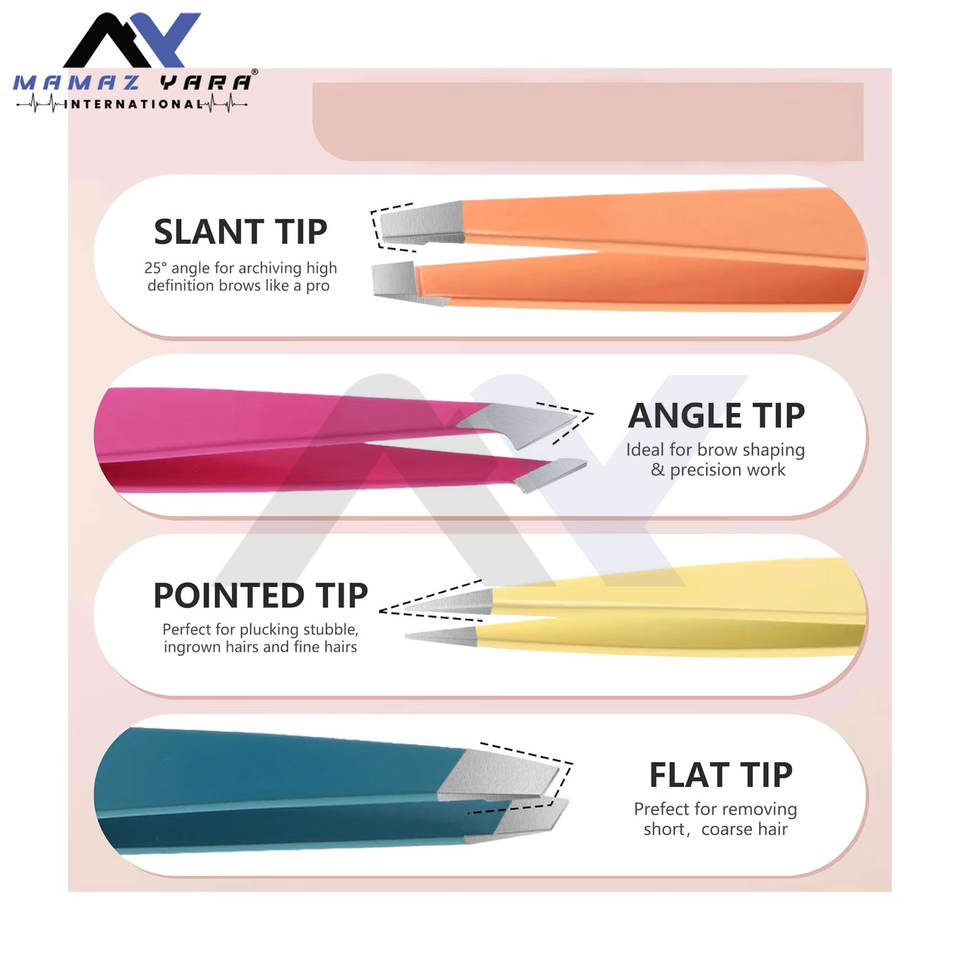 ชุดแหนบถอนขนคิ้วแบบมืออาชีพ 4 ชิ้น สำหรับผู้ชายและผู้หญิง สีลูกกวาด พกพาสะดวก ใช้สำหรับขนตาและกำจัดขนคิ้วที่กำลังงอก