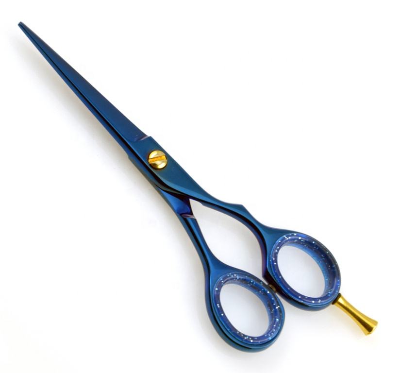 กรรไกรตัดผมสแตนเลส5.5นิ้วแบบมืออาชีพ420มีดโกนคมเครื่องมือความงามเคลือบพลาสมาสีฟ้า