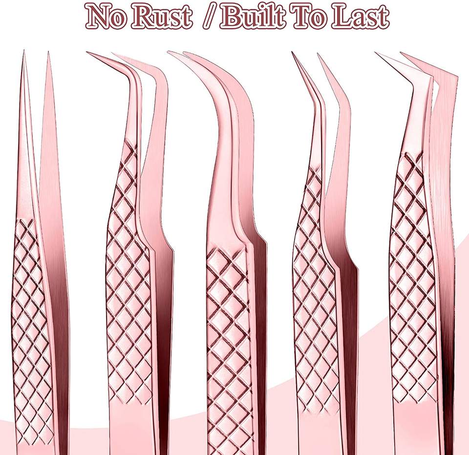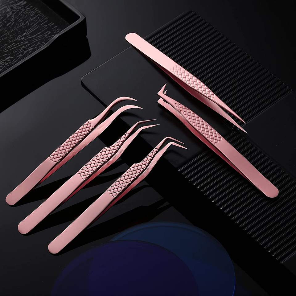 ชุดแหนบต่อขนตาสแตนเลส5ชิ้นสำหรับมืออาชีพชุดปลายแหลมไฟเบอร์ใช้เพื่อความงามสำหรับการต่อขนตา