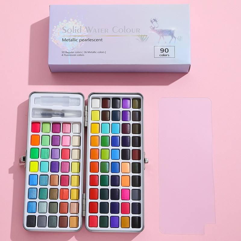 Professional 50/100 Colors Solid Watercolor Paint Set with Paint Brush for Paper & Canvas 5ml Capacity