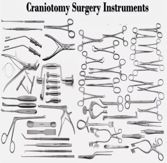 ชุดเครื่องมือผ่าตัดเปิดกะโหลกศีรษะ 56 ชิ้น สำหรับการผ่าตัดระบบประสาทขั้นพื้นฐาน
