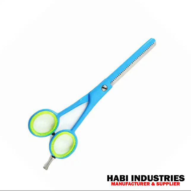 6.6มืออาชีพ \ "กรรไกรตัดผมแบบบางเคลือบสีฟ้าทนทานคมปรับนิ้วได้ผมสแตนเลสสตีล