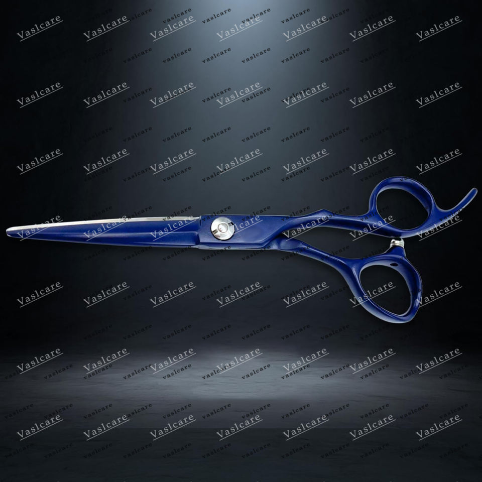 กรรไกรตัดผมสีฟ้า6 "สำหรับมืออาชีพใบมีดสีฟ้าไทเทเนียมผิวนูนสำหรับสไตลิสและช่างตัดผมกรรไกรโดย vaslcare