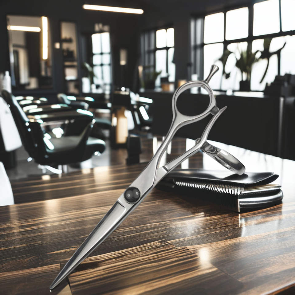 กรรไกรตัดผมมืออาชีพ ขนาด 6 นิ้ว เหล็กญี่ปุ่น AUS8 สำหรับมือขวา ใช้ในร้านเสริมสวย ใบมีดตรงคมกริบ หมุนได้ด้วยนิ้วหัวแม่มือ ความแข็ง 60-61HRC