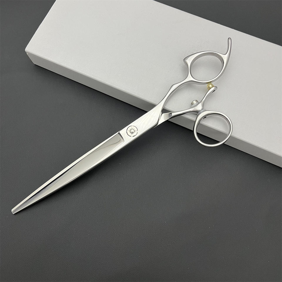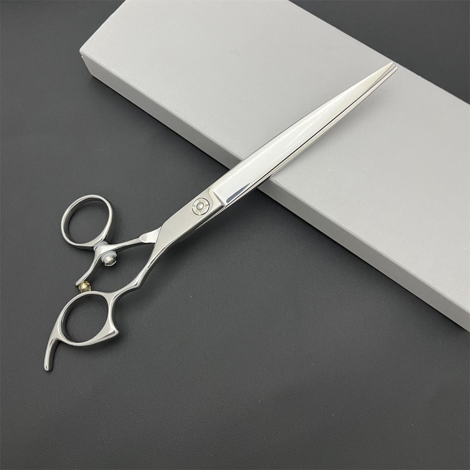 กรรไกรตัดขนสัตว์เลี้ยงมืออาชีพ ขนาด 7.5 นิ้ว ทำจากสแตนเลส สำหรับตัดขนสุนัข พร้อมด้ามจับหมุนได้ และดีไซน์ด้ามจับแบบโค้งงอ