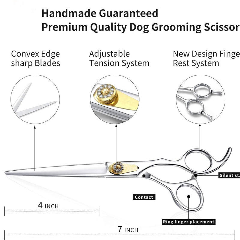กรรไกรตัดขนสุนัขแบบมืออาชีพ ขนาด 7 นิ้ว ผลิตจากเหล็กกล้าไร้สนิม 440C ใบมีดแบน สำหรับดูแลความงามของสุนัข