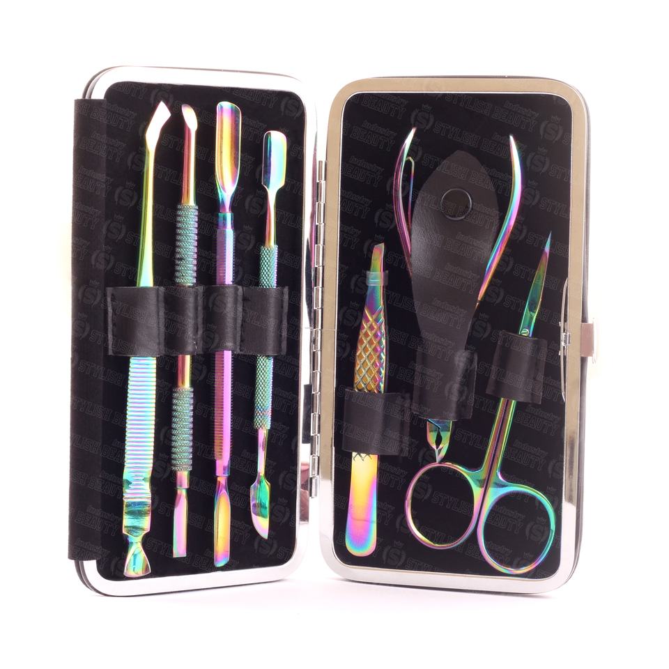 ชุดทำเล็บเท้าทำเล็บมือเล็บเท้า7ชิ้นพร้อมรุ้งไทเทเนียมเสร็จสิ้นตัดแต่งหนังกำพร้าตัดเล็บและมืออาชีพกรูมมิ่ง