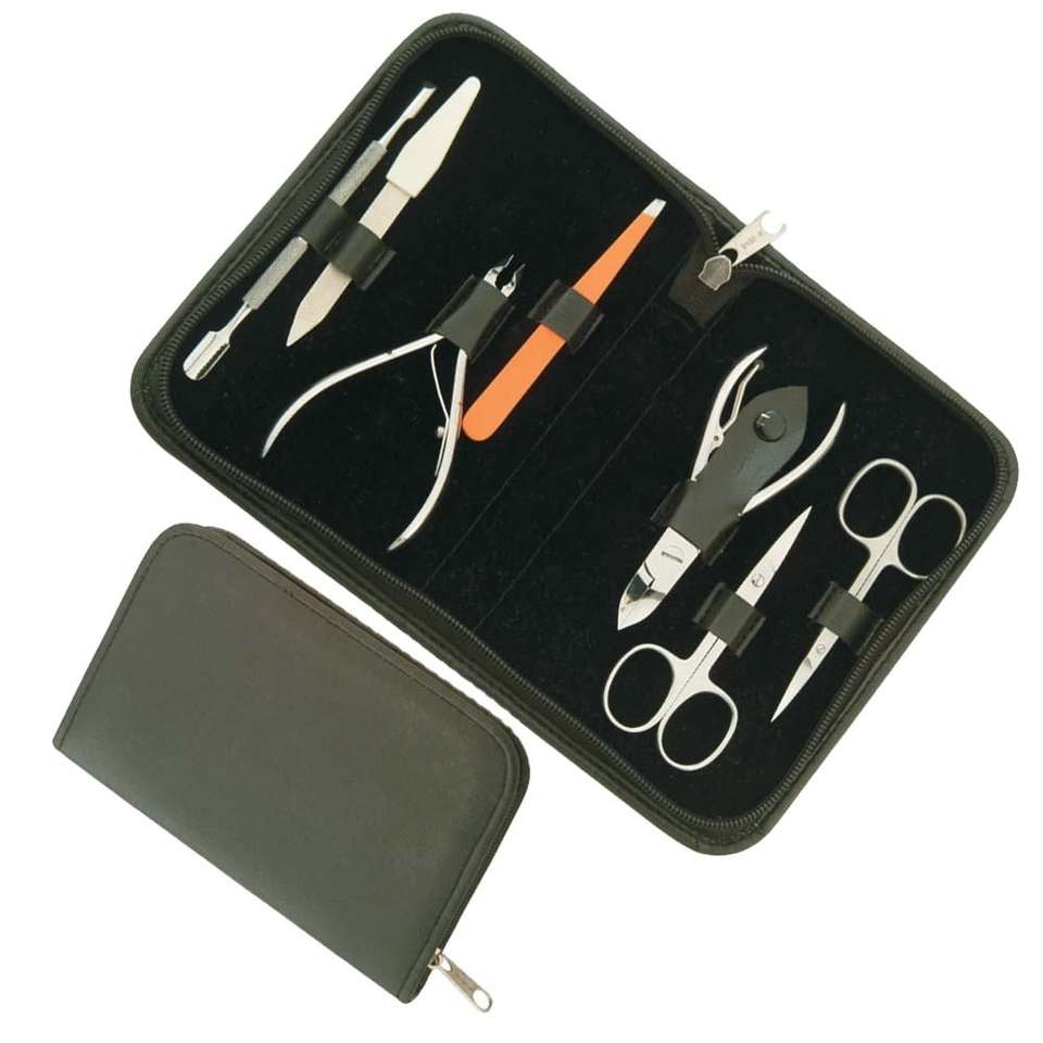 ชุดทำเล็บมืออาชีพสุดหรู 7 ชิ้น ทำจากสแตนเลส พร้อมกระเป๋าหนัง PU สำหรับพกพา | OEM แบรนด์ส่วนตัว