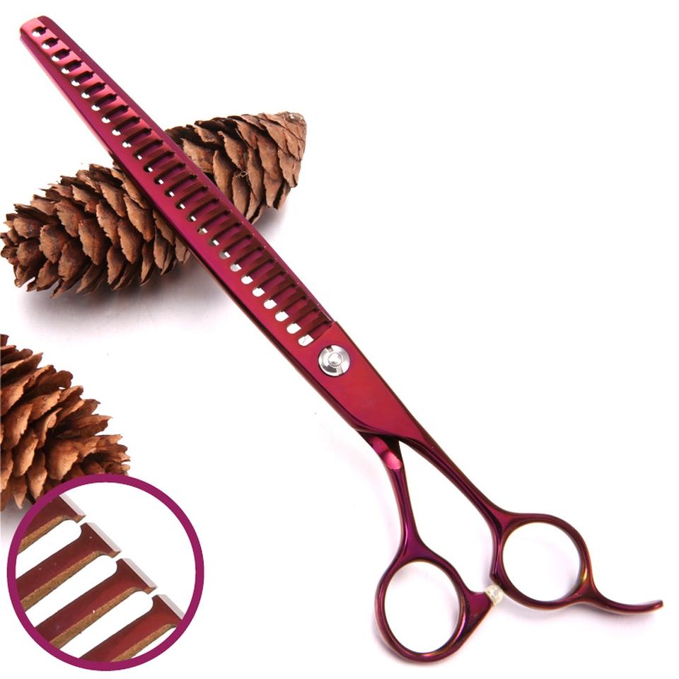 มืออาชีพ 8 นิ้วไทเทเนียมเคลือบสีม่วงสัตว์เลี้ยงสุนัขกรูมมิ่ง Chunkers กรรไกรตัดขนบางกรรไกร