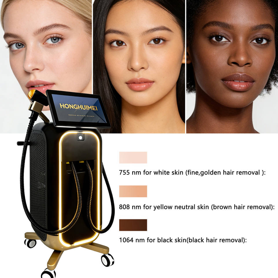 เครื่องเลเซอร์ไดโอดระดับมืออาชีพ 808 นาโนเมตร 3 ความยาวคลื่น 755/808/1064 นาโนเมตร สำหรับกำจัดขนและลบรอยสัก ระบบเลเซอร์พิโก