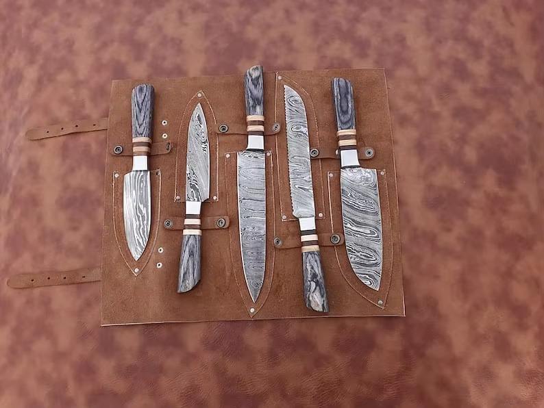 ชุดมีดเชฟดามัสกัส 9 ชิ้น ระดับมืออาชีพ ด้ามจับสีสันสวยงาม สำหรับครัว คอลเลคชั่นมีดทำครัว ขายส่ง รับผลิตแบบ OEM