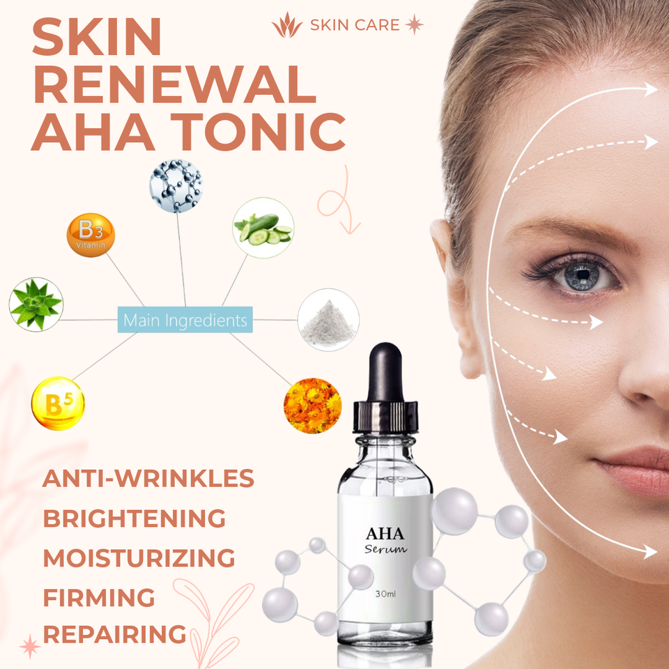 เซรั่มผลัดเซลล์ผิว AHA สูตรมืออาชีพ ผสมวิตามินและสมุนไพร ช่วยให้ผิวขาวกระจ่างใส ลดเลือนริ้วรอย ต่อต้านอนุมูลอิสระ บำรุงผิวชุ่มชื้น