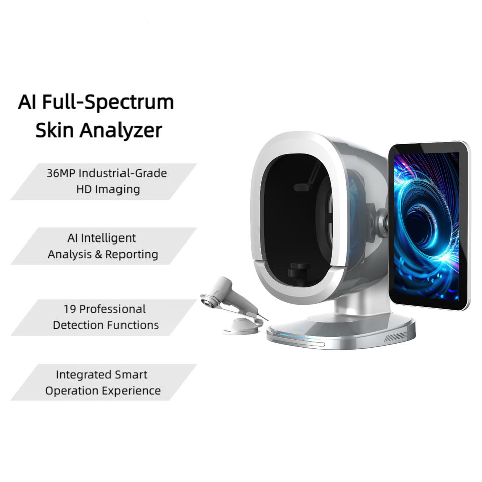 เครื่องวิเคราะห์ผิวหน้า AI ระดับมืออาชีพสำหรับเดสก์ท็อป พร้อมระบบภาพถ่ายมัลติสเปกตรัมและหน้าจอสัมผัส สำหรับการวิเคราะห์ใบหน้าในร้านเสริมสวยและคลินิก