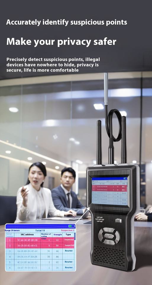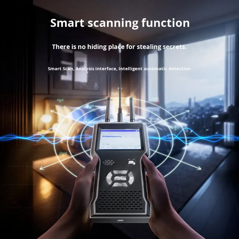 เครื่องตรวจจับป้องกันการสอดแนมอัจฉริยะแบบมืออาชีพเทคโนโลยีใหม่สัญญาณบรอดแบนด์การวิเคราะห์สัญญาณ RF + แม่เหล็ก + WiFi การสแกนความเป็นส่วนตัวส่วนบุคคล