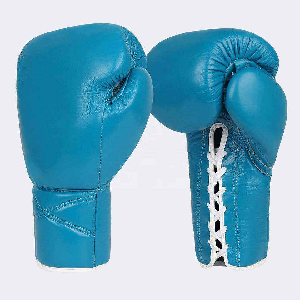 ถุงมือชกมวยหนังแท้สำหรับมืออาชีพ ขนาด 12 ออนซ์ พร้อมโลโก้และสีที่กำหนดเอง แบบผูกเชือก