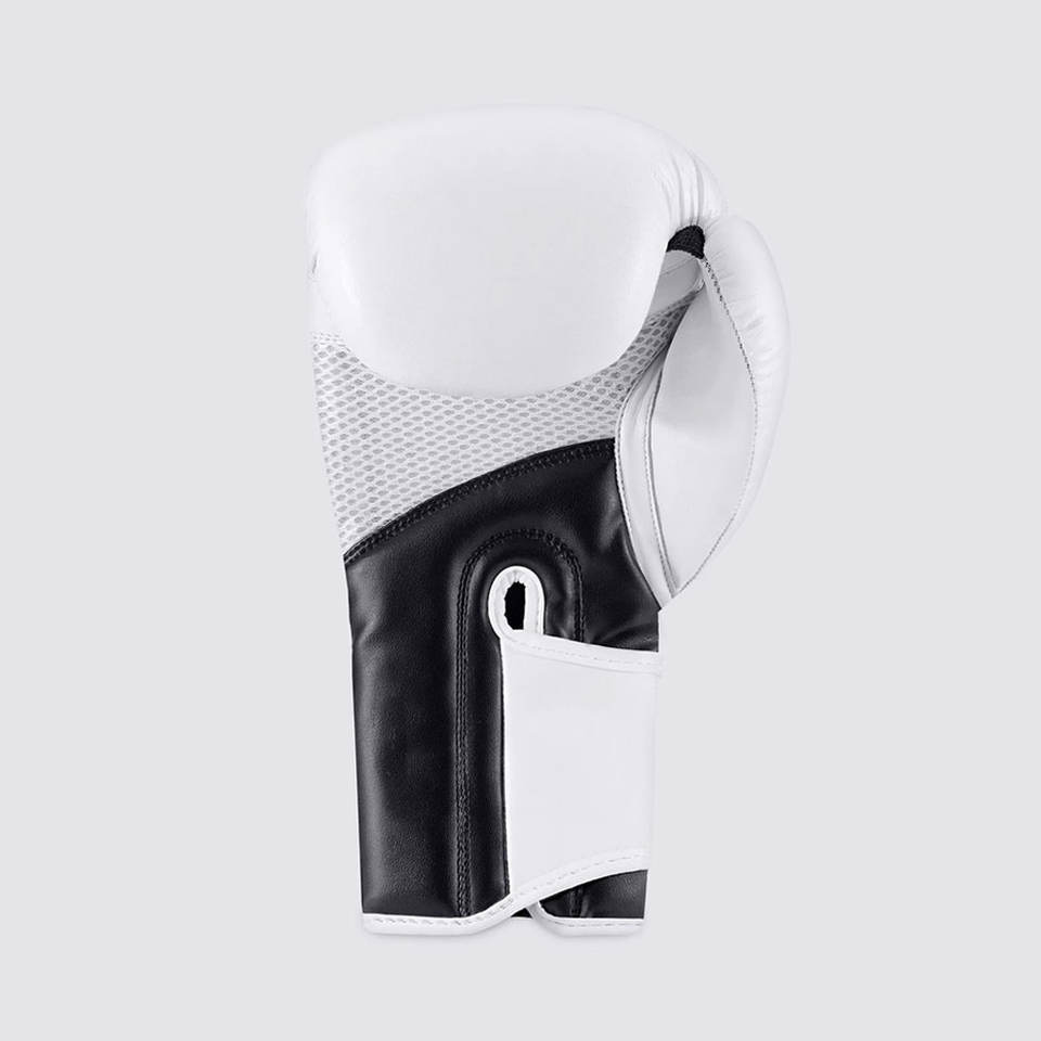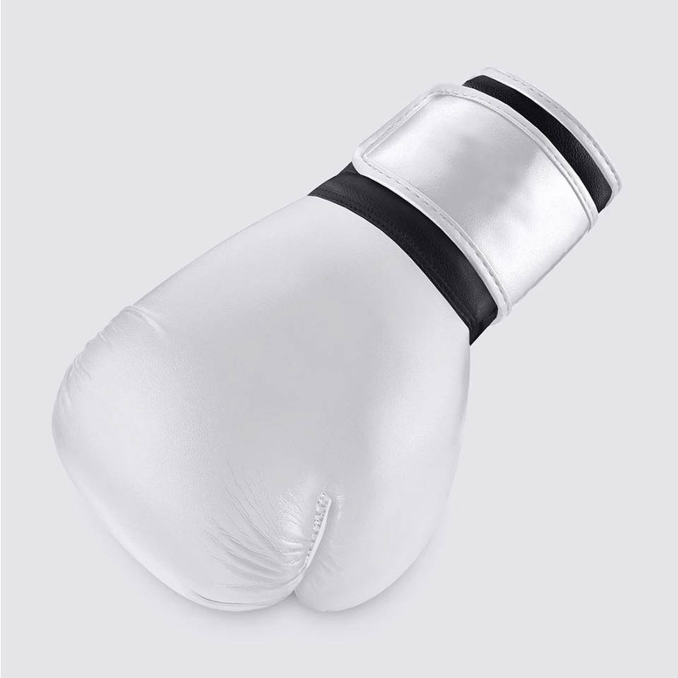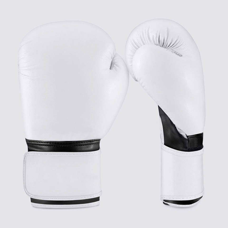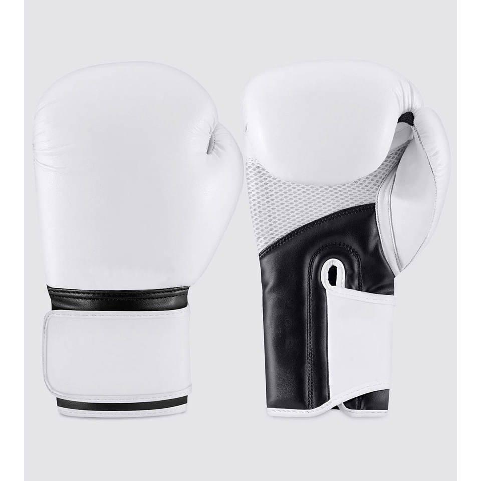 นวมชกมวยหนังแท้สีขาวทั้งหมดสำหรับมืออาชีพ - แผ่นรองรับแรงกระแทกแบบโฟมความหนาแน่นสูง - สายรัดแบบปรับได้