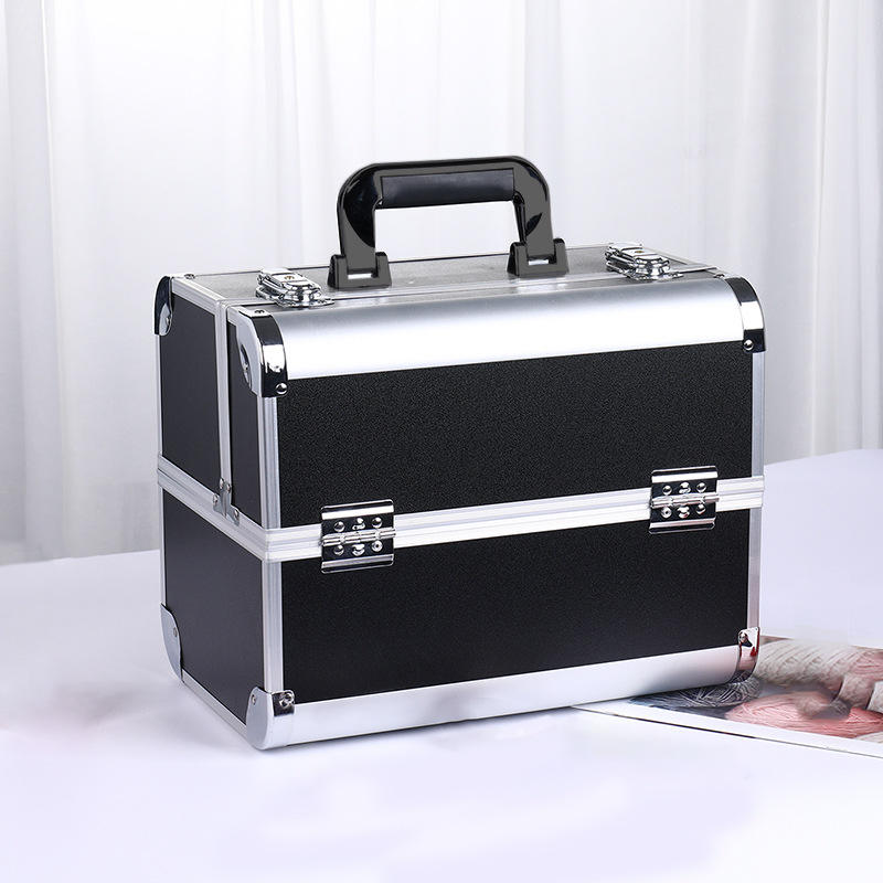 กล่องใส่เครื่องสำอางอลูมิเนียมอัลลอยด์แบบมืออาชีพ พื้นผิวพลาสติกแบบด้าน ฝาปิดล็อคได้ กล่องเก็บของใช้ในบ้าน สำหรับอุปกรณ์เสริมสวยและทำผม