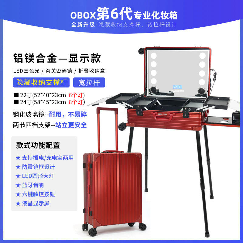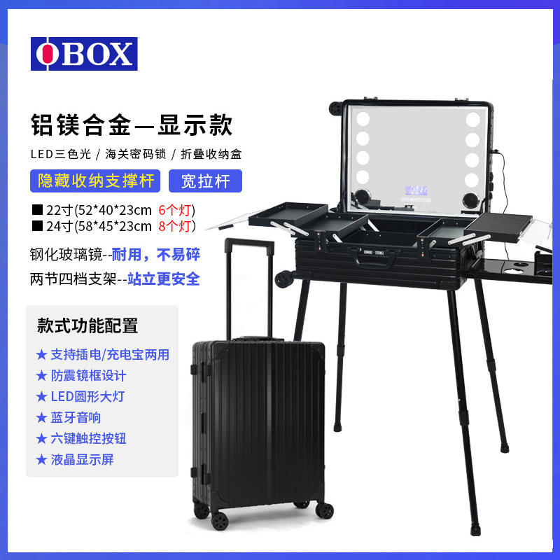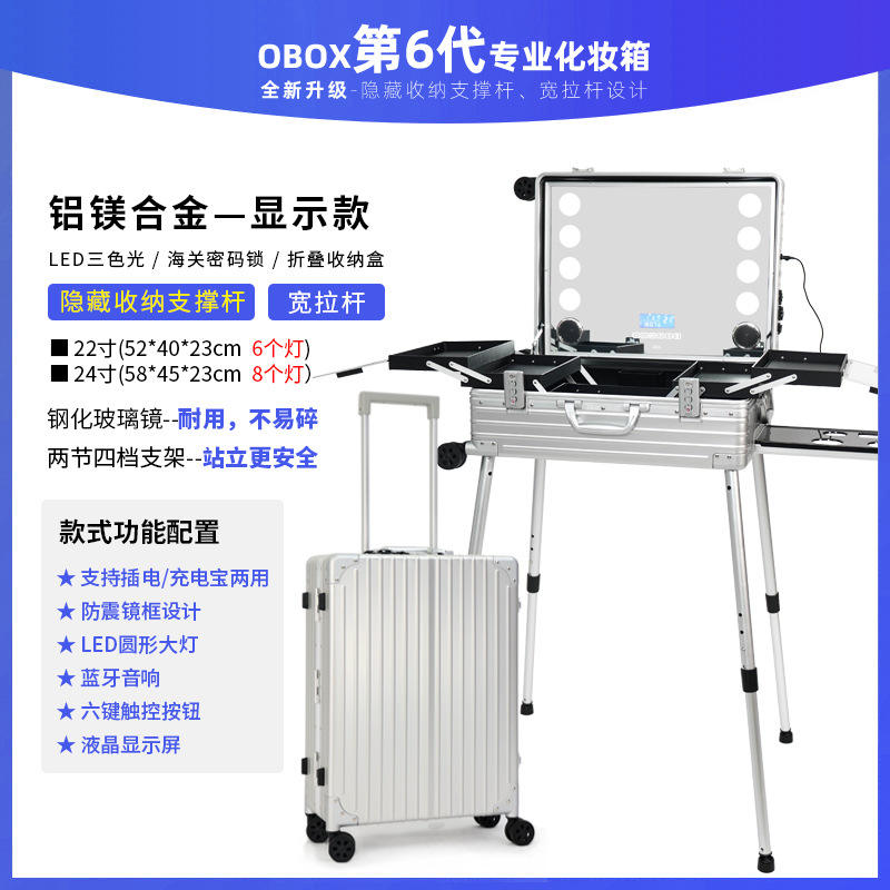 กระเป๋าเครื่องสำอางอลูมิเนียมแบบมืออาชีพ พร้อมไฟกระจก LED และล้อ สำหรับใช้ในร้านเสริมสวยทำเล็บ