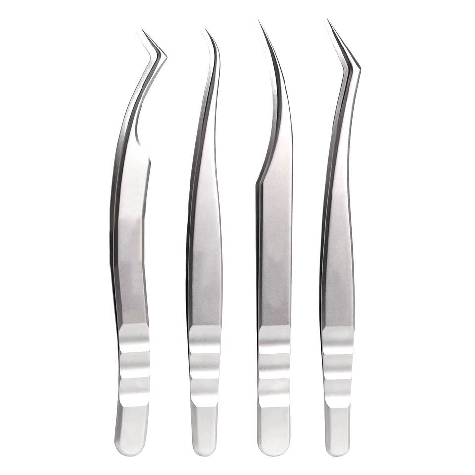 Professional Anti-Static Eyelash Extension Tweezers Volume Tweezer Set 4pcs set Stainless Steel Anti-Slip Makeup Tools