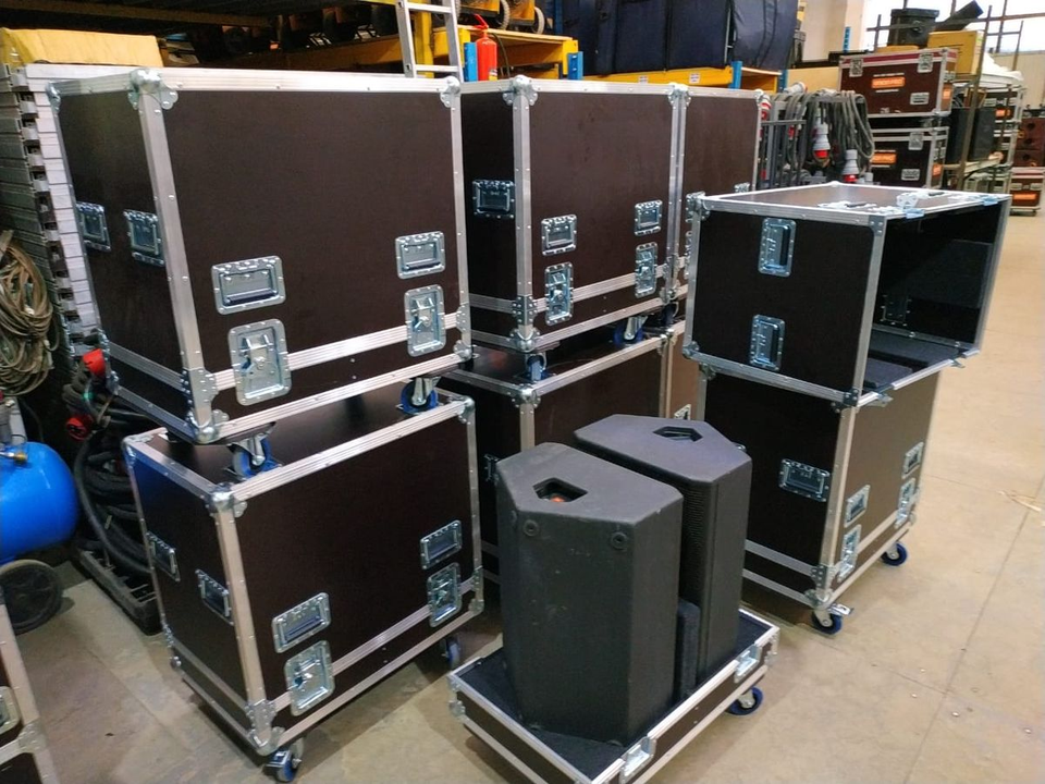 อุปกรณ์เครื่องเสียงมืออาชีพลำโพงแบบแอคทีฟไลน์อาร์เรย์เคสกันน้ำมีล้อ