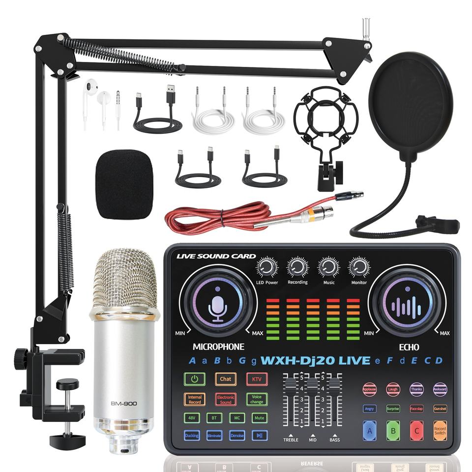 ไมโครโฟนคอนเดนเซอร์ BM900 ระดับมืออาชีพ 48V ไร้สาย ตัดเสียงรบกวน พร้อมมิกเซอร์เสียงคู่ สำหรับการสตรีมสดและเล่นเกม