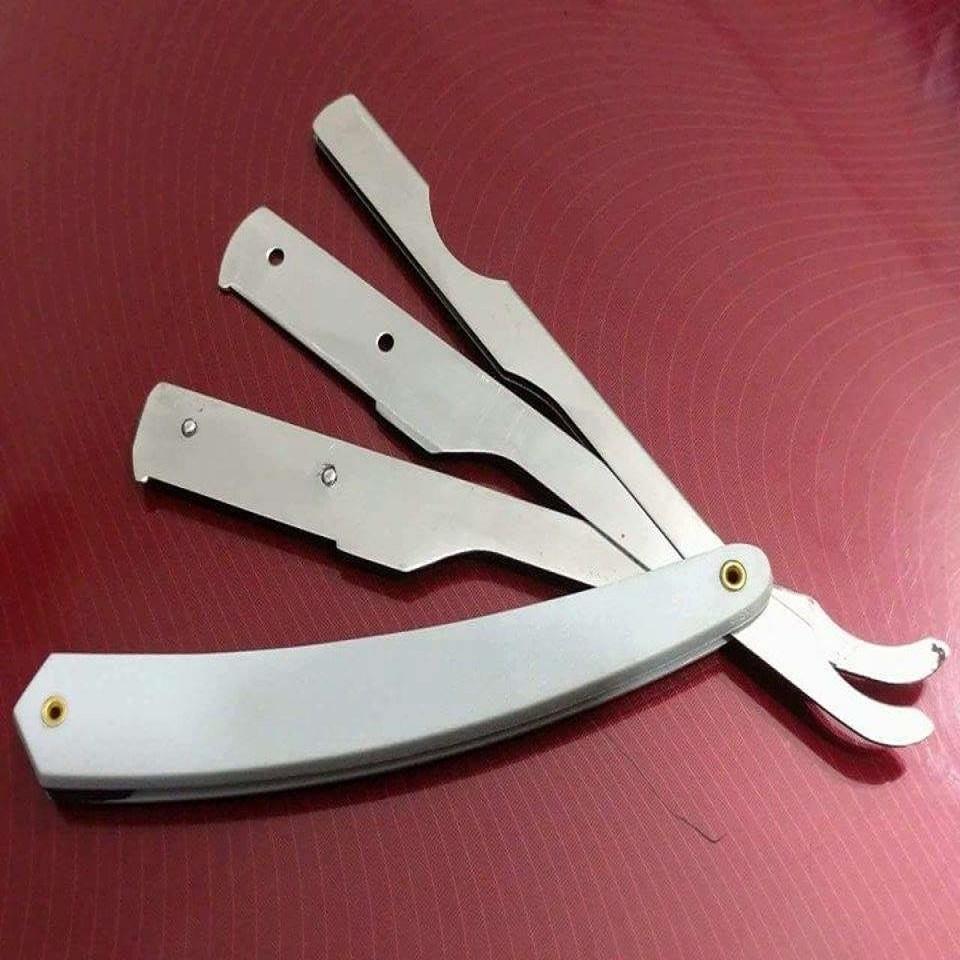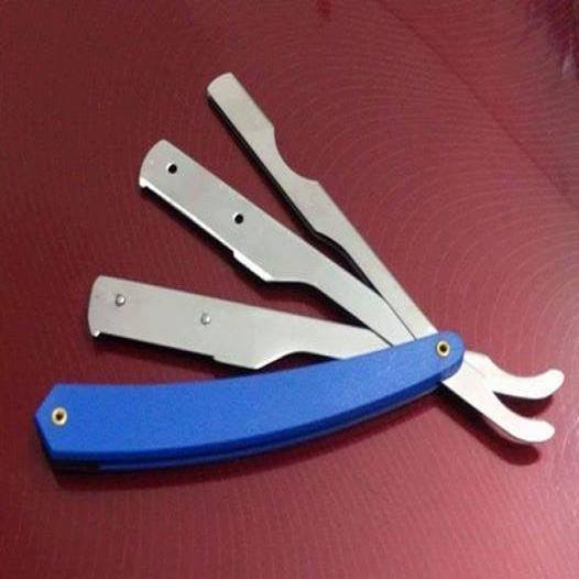 มีดโกนพับได้สำหรับช่างตัดผมมืออาชีพ สีทอง ใบมีดเดี่ยวแบบครึ่งใบ คมตรง พร้อมโลโก้สั่งทำ