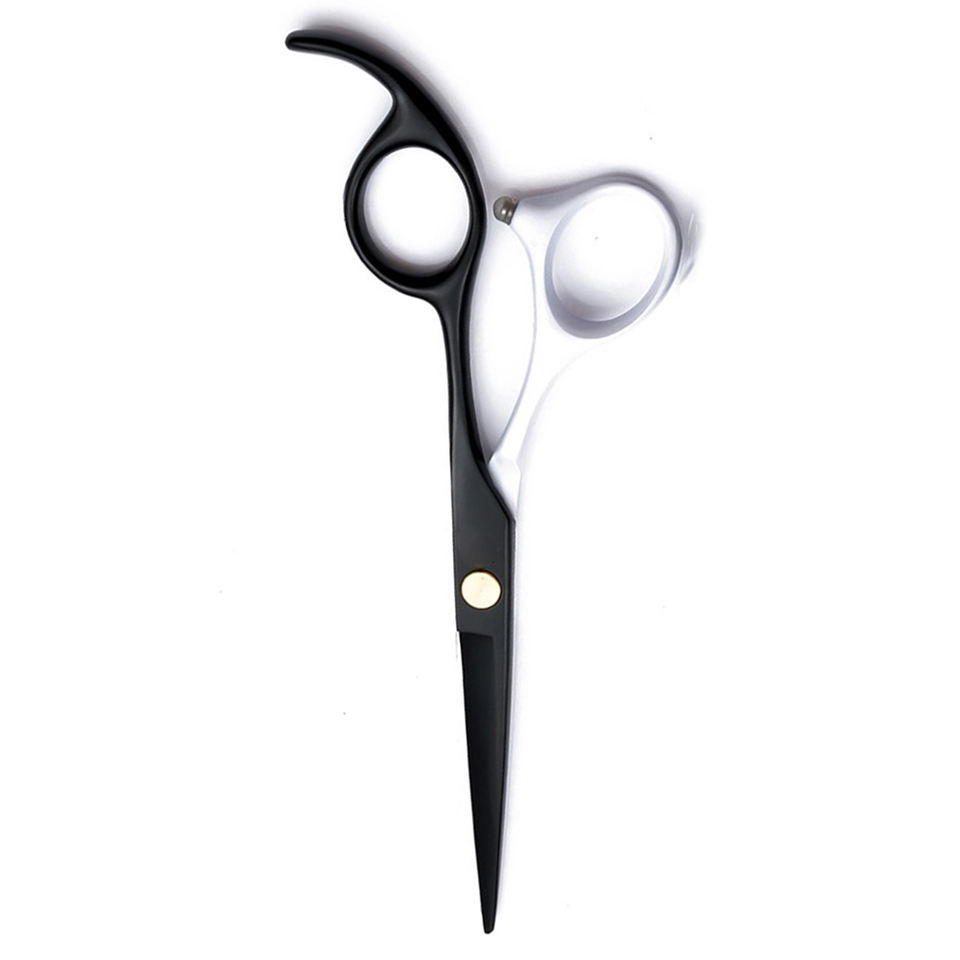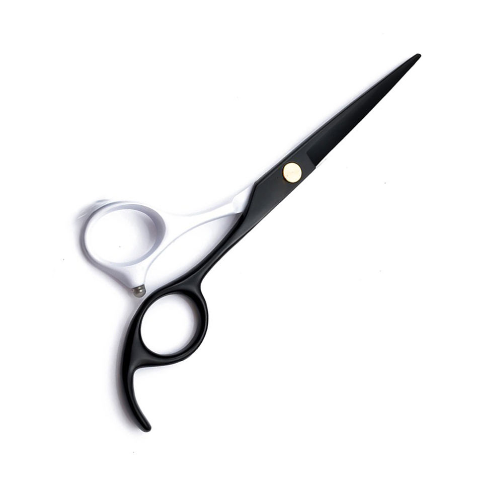 กรรไกรตัดผมสแตนเลสสีดำและสีขาวพร้อมที่วางนิ้วคงที่