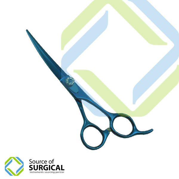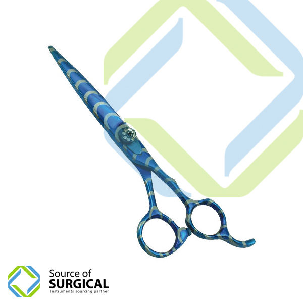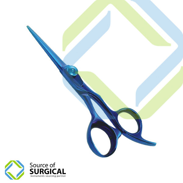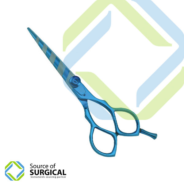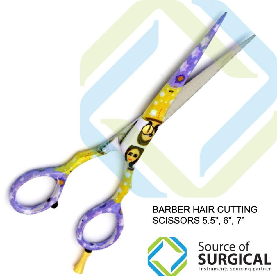 กรรไกรตัดผมมืออาชีพใบมีดสแตนเลสพร้อมด้ามจับเหล็กเคลือบกระดาษเครื่องมือความงามปลายทื่อแหลม