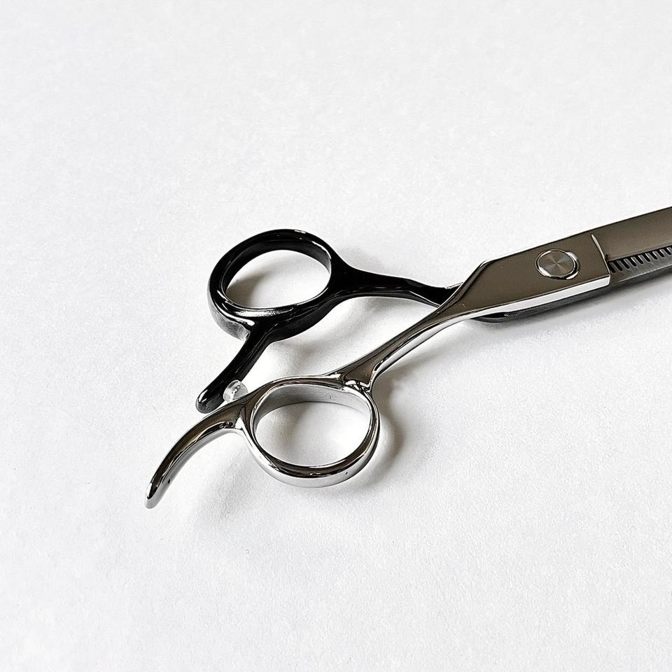 กรรไกรตัดผมมืออาชีพ 6.5 นิ้ว กรรไกรซอยผม ปลายโค้ง ชุบไทเทเนียม สแตนเลส ด้ามจับแบบออฟเซ็ต