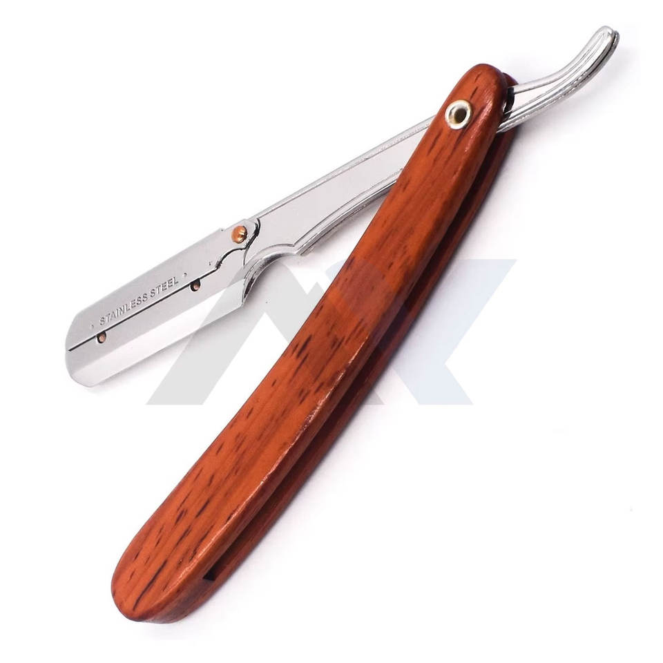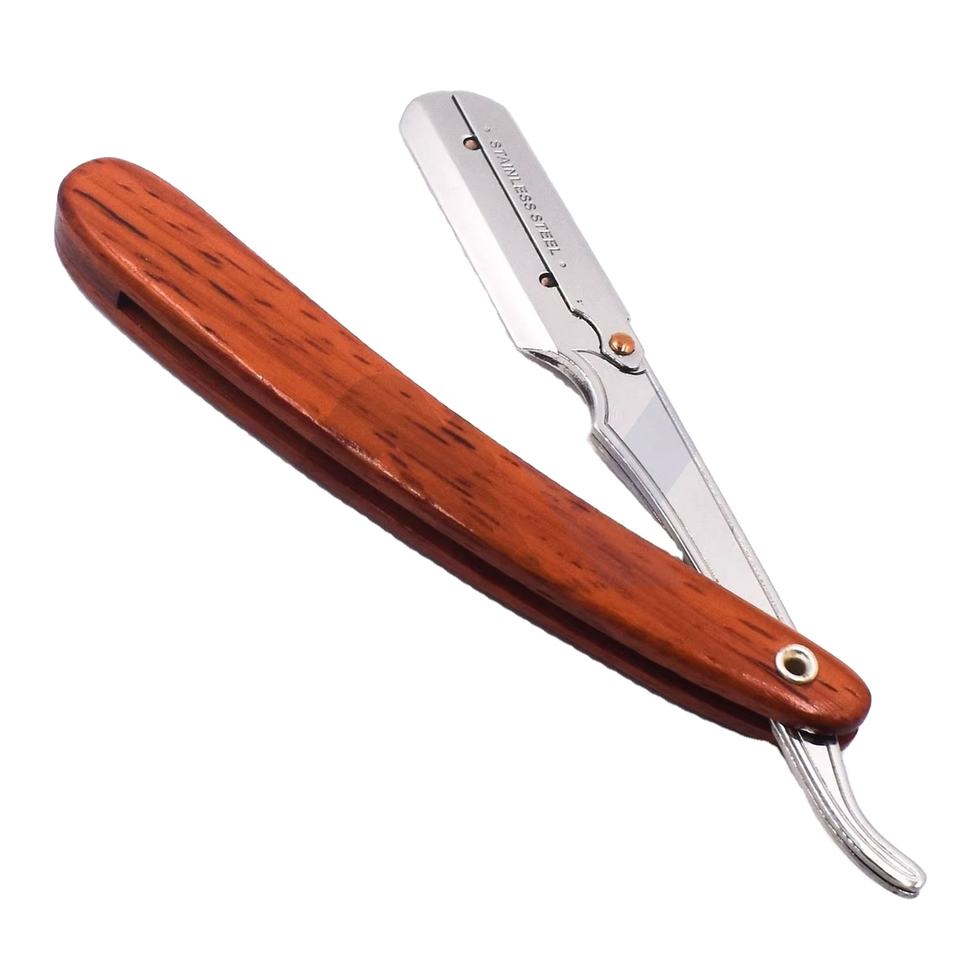 มีดโกนหนวดสำหรับช่างตัดผมมืออาชีพ ด้ามไม้ พร้อมบริการสกรีนโลโก้และสร้างแบรนด์ OEM มีดโกนคุณภาพสูงสำหรับช่างตัดผม