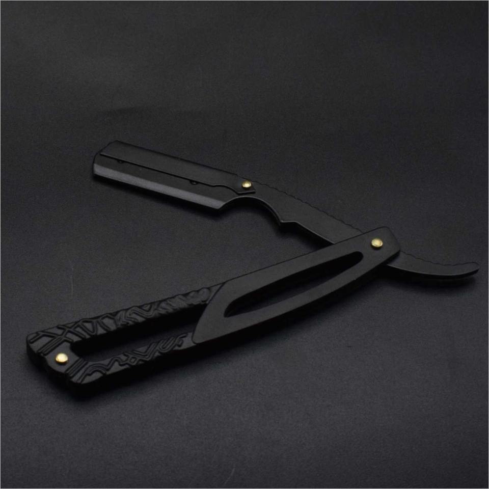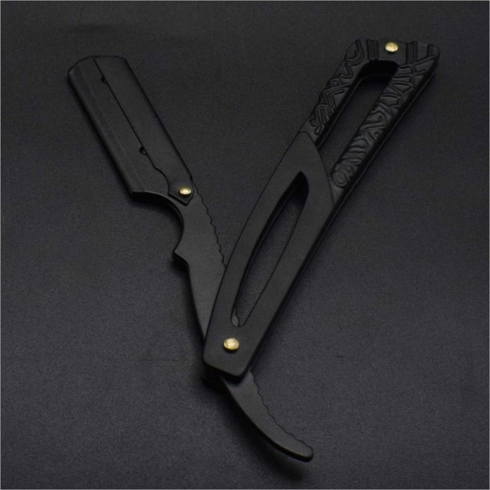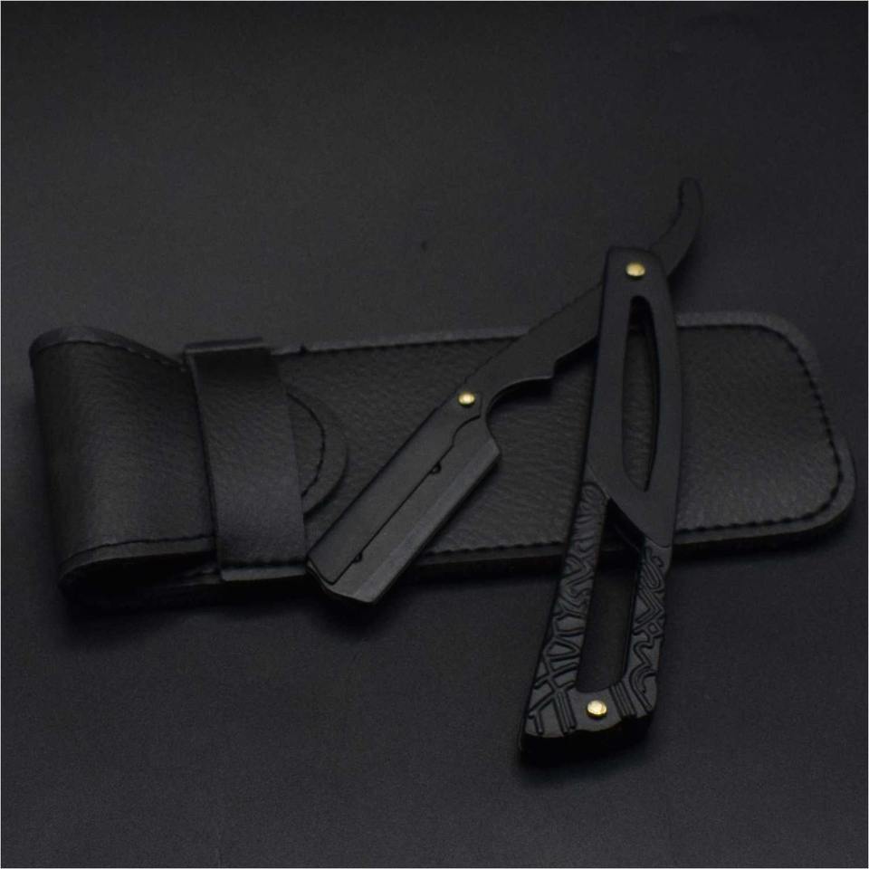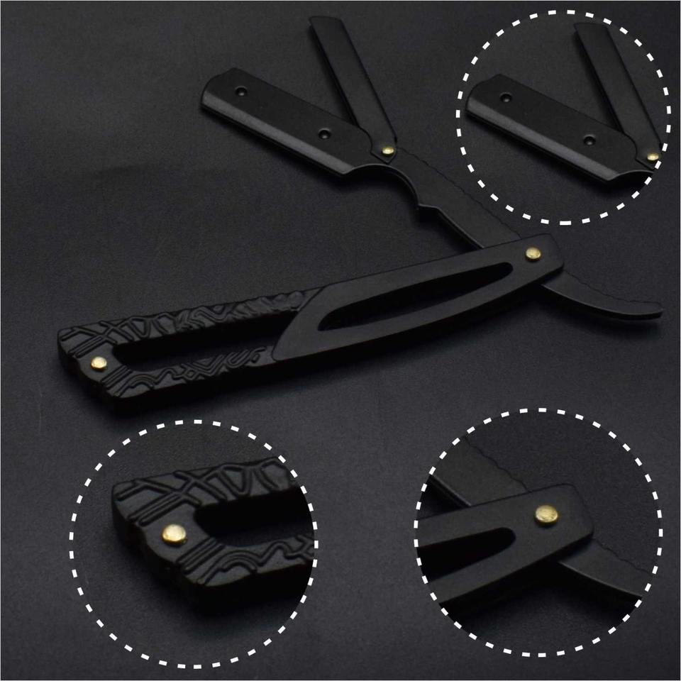 มีดโกนหนวดตรงทำมือจากสแตนเลสสำหรับร้านตัดผมมืออาชีพ พร้อมด้ามจับทำจากเขาแกะ