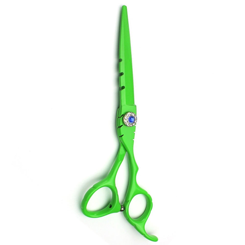 กรรไกรช่างตัดผมสแตนเลส6.5นิ้วเคลือบสีเขียวกรรไกรร้านเสริมสวยพร้อมที่วางนิ้ว