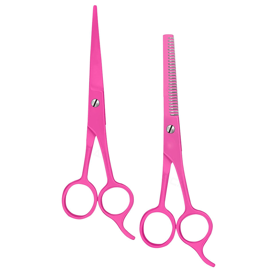 ชุดกรรไกรช่างตัดผมแบบมืออาชีพชุดกรรไกรเหล็กเหล็กเหล็กใบมีดคมเคลือบสีชมพู