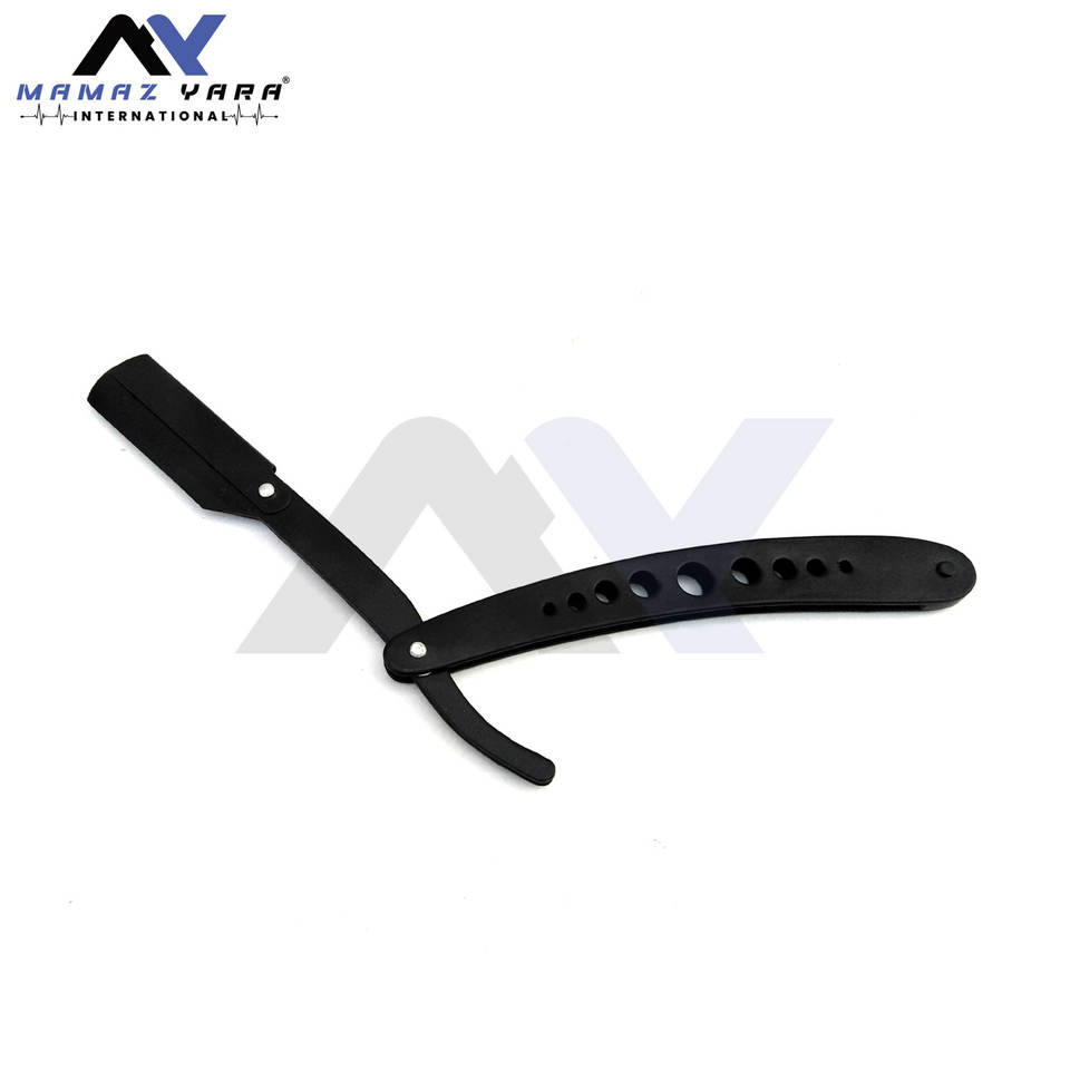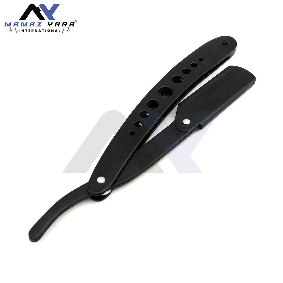 มีดโกนหนวดแบบตรงสำหรับช่างตัดผมมืออาชีพ ปรับแต่งได้ ผลิตจากสแตนเลสสีดำ พร้อมระบบล็อคแบบสวิง คลาสสิก สำหรับโกนหนวดแบบคัทโธรว์ท