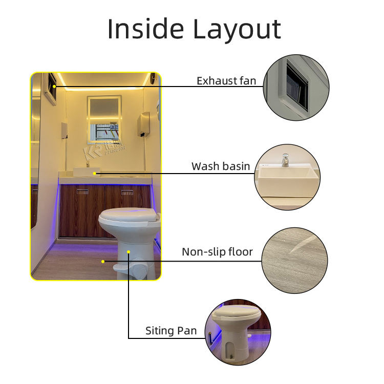 ระบบรถเข็นอาบน้ำในห้องน้ำแบบมืออาชีพ พร้อมห้องน้ำเคลื่อนที่แบบพ่วงพ่วงและห้องสุขาแบบพกพา