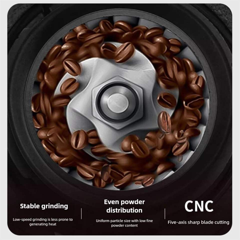 เครื่องบดกาแฟไฟฟ้าพร้อมแหล่งจ่ายไฟฟ้าจากสเตนเลสสตีลและอลูมิเนียม USB และแบตเตอรี่สำหรับใช้ในครัวเรือน