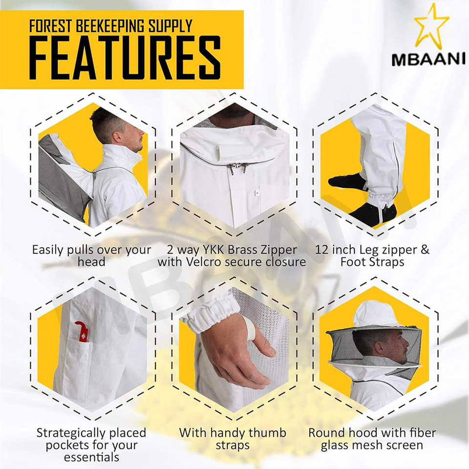 ชุดผึ้งมืออาชีพสำหรับชายและหญิงชุดการเลี้ยงผึ้งกับถุงมือผึ้งชุดผ้าฝ้าย100% ชุดสำหรับผู้มีงานอดิเรก