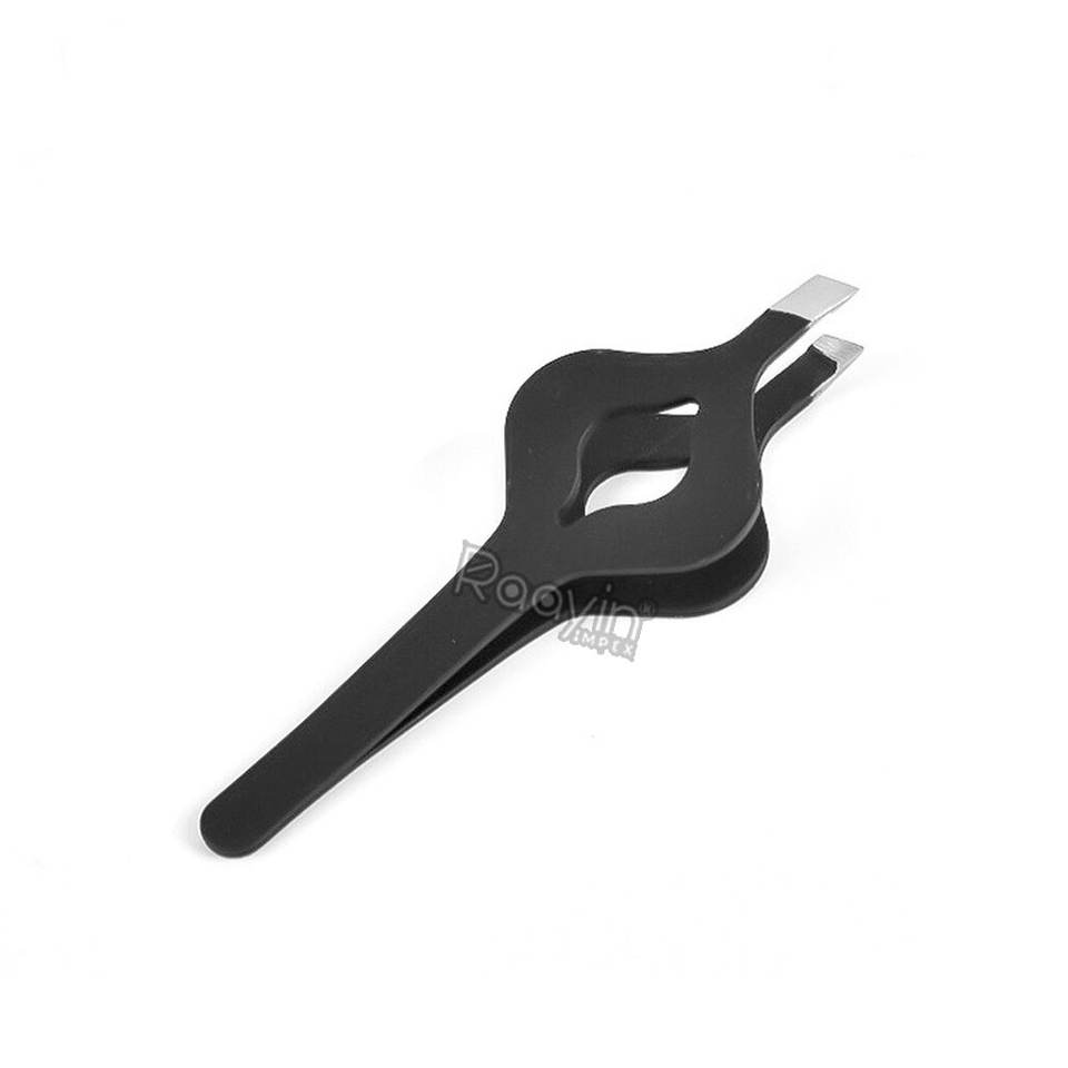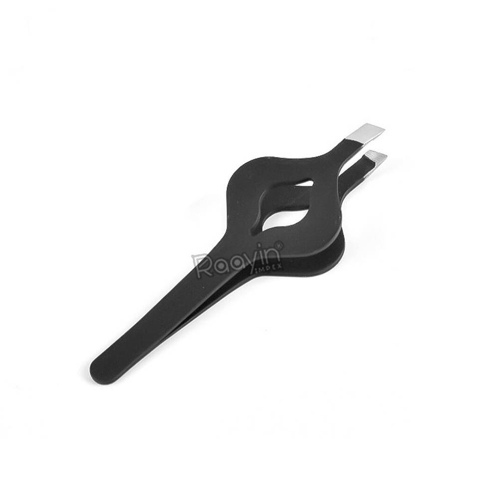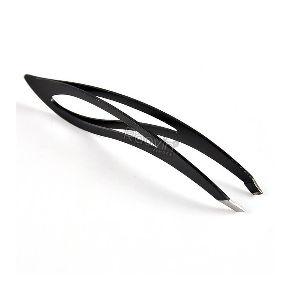 แหนบต่อขนคิ้วสแตนเลสคุณภาพดีไซน์ระดับมืออาชีพ ปลายเฉียง ใช้ซ้ำได้ ทนทาน สีดำ พลาสมา แบบเรียบ