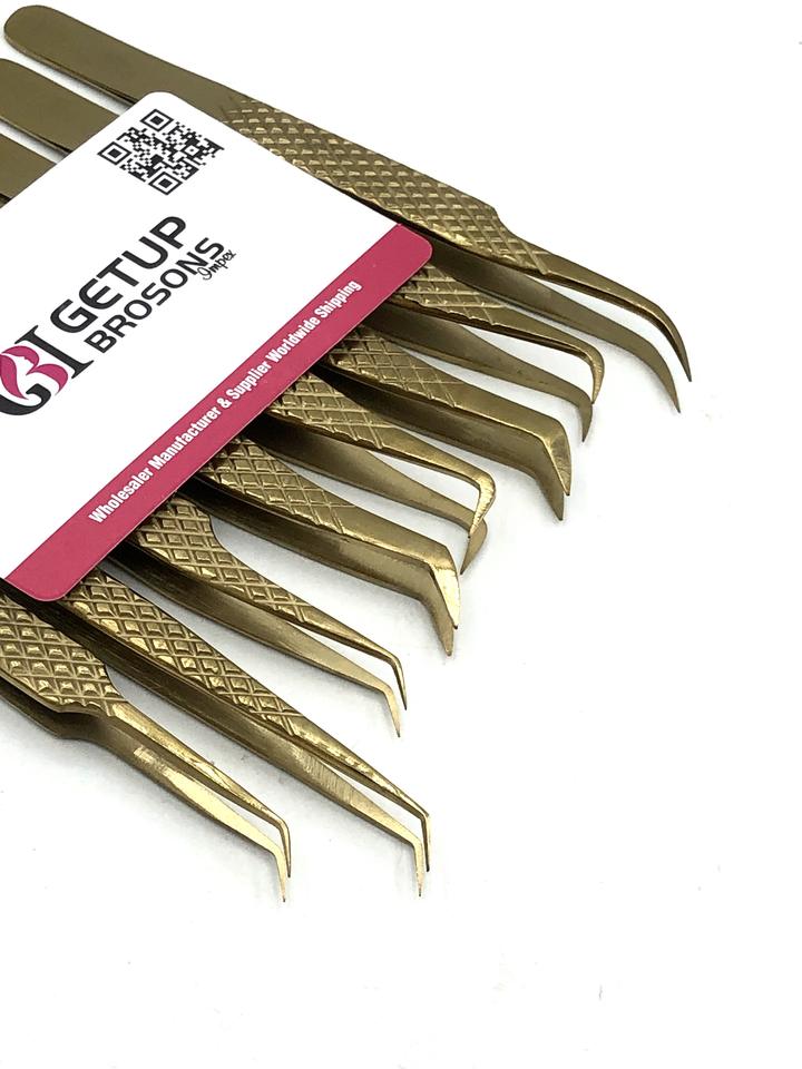 แหนบต่อขนตาสแตนเลสอุปกรณ์เสริมความงามที่จับเพชรพลาสม่าสีทองสไตล์ต่างๆแบบมืออาชีพ