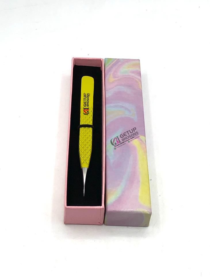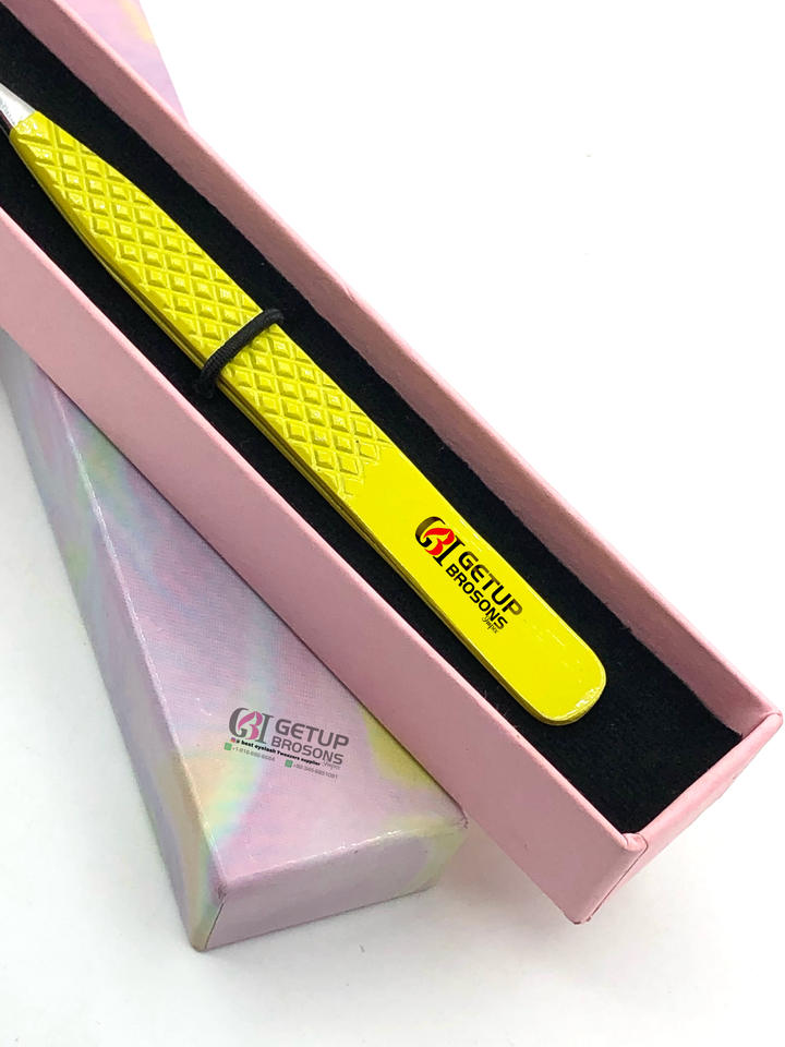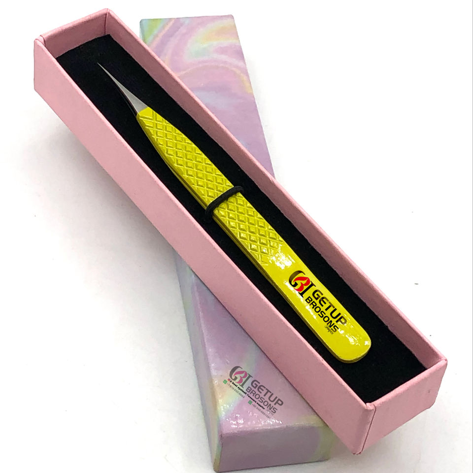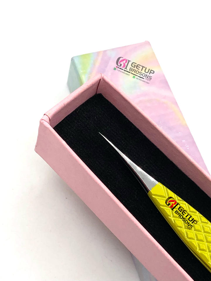 แหนบต่อขนตาสแตนเลสพร้อมที่จับเพชรสีเหลืองอุปกรณ์เสริมความงามสไตล์มืออาชีพที่ดีที่สุด