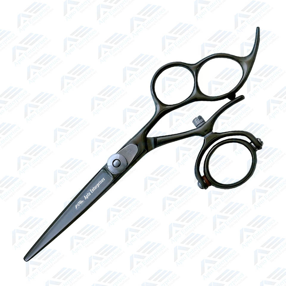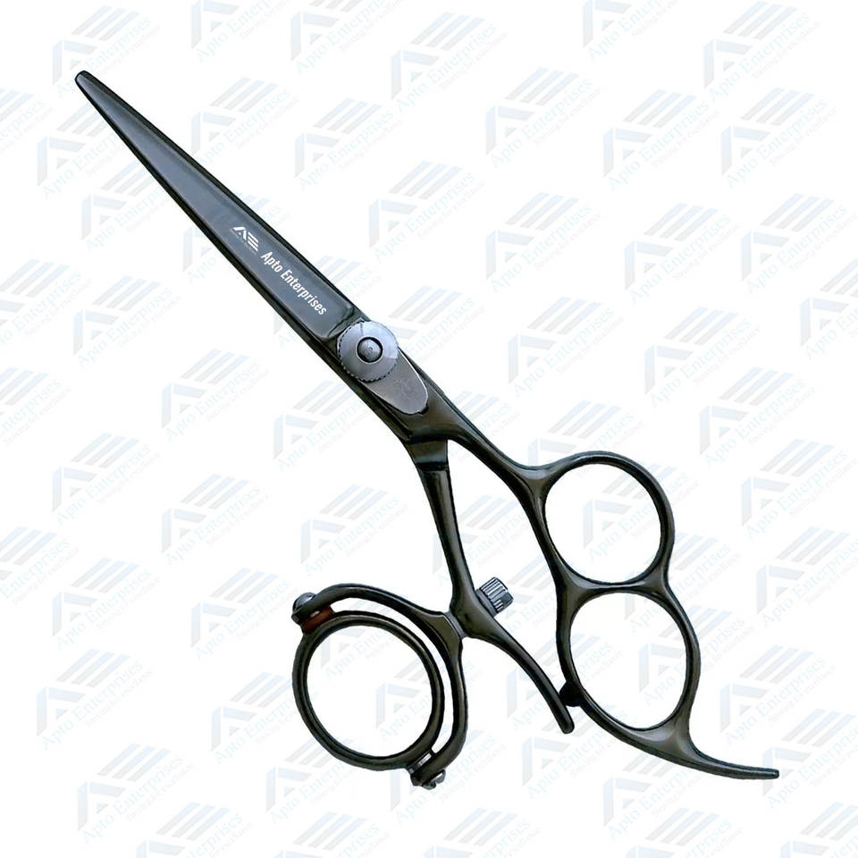 กรรไกรตัดผมแบบมืออาชีพสีดำหมุนสองชั้นอุปกรณ์ความงามกรรไกรตัดผมแบบมืออาชีพ