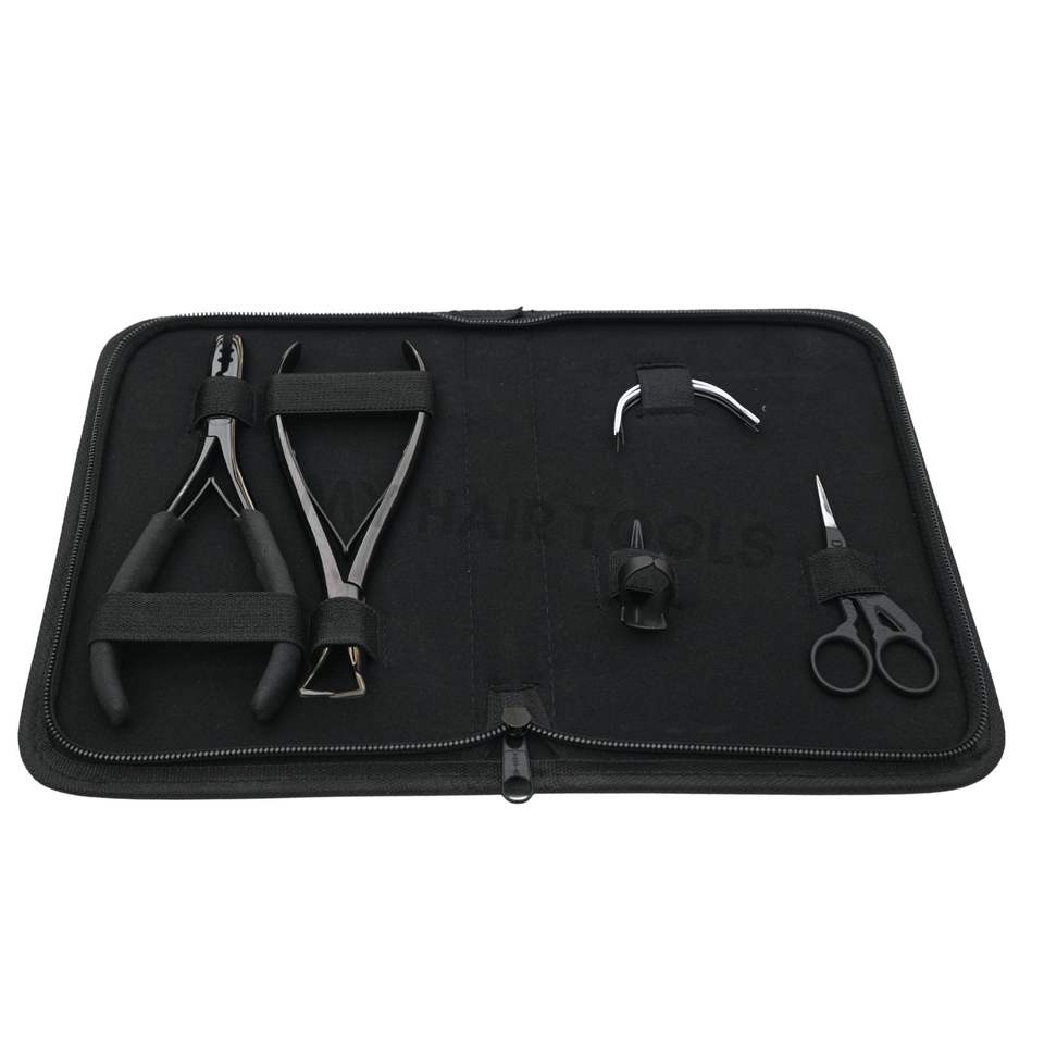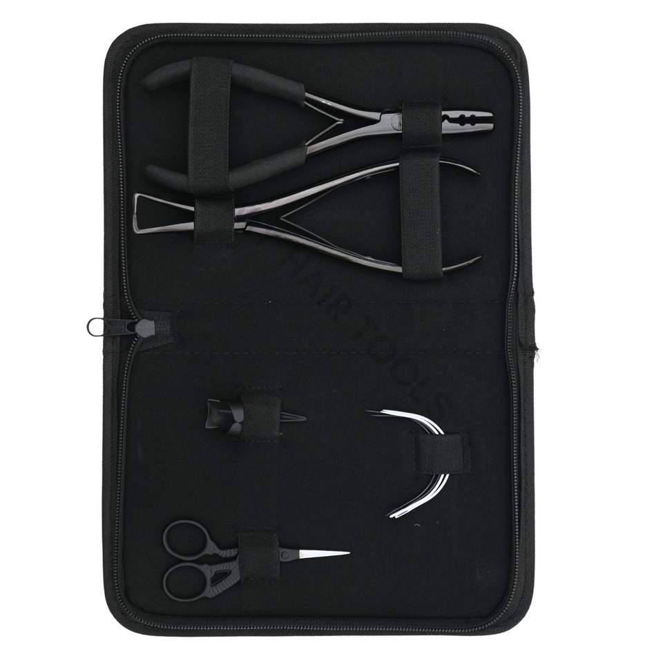ชุดอุปกรณ์ต่อผมสีดำแบบมืออาชีพ คีมหนีบลูกปัด คีมถอดไมโครลิงค์ เข็มเย็บผม คลิปหนีบแบ่งผม