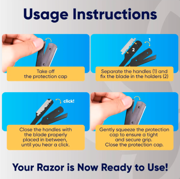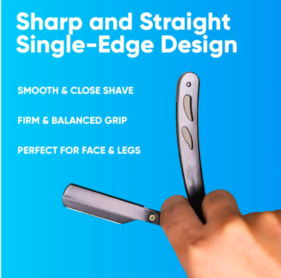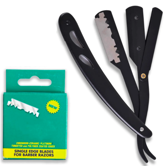 ชุดมีดโกนขอบตรงสีดำมืออาชีพพร้อม100แบบใช้แล้วทิ้งใบมีดตัดผมสแตนเลสสำหรับกำจัดขนตามร่างกายแบบผง