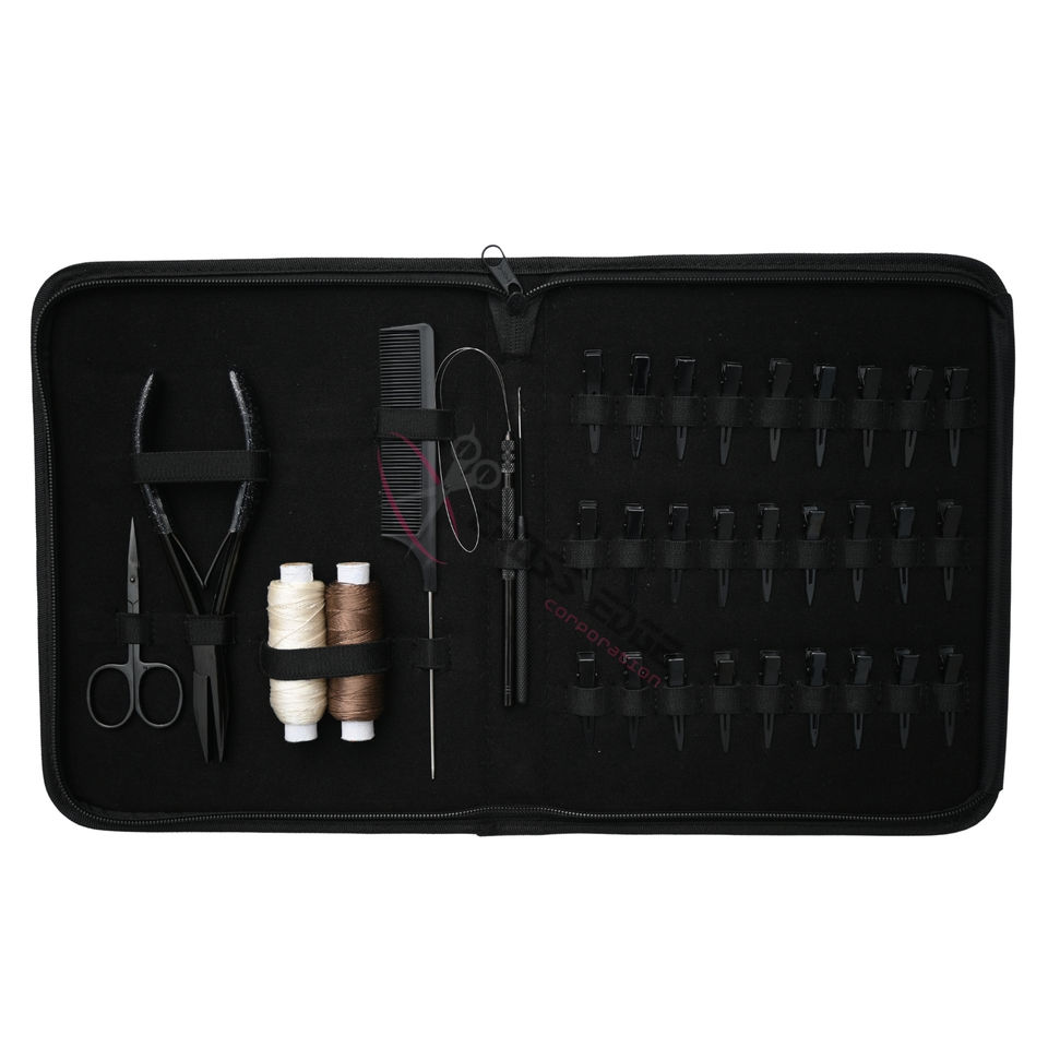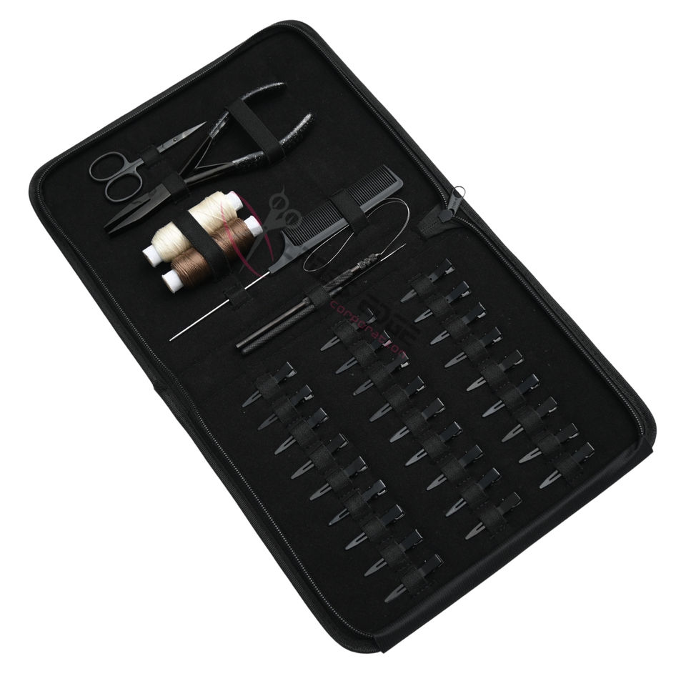 ชุดเครื่องมือต่อผมสีดำแบบยึดแน่น พร้อมคีมหนีบแบบแบน