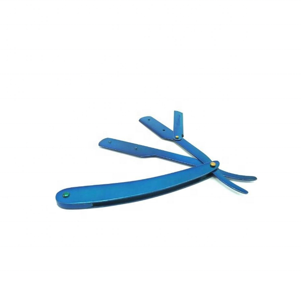 มีดพับที่โกนหนวดทำจากไทเทเนียม,ใช้สำหรับตัดผมทรงตรงสีฟ้า