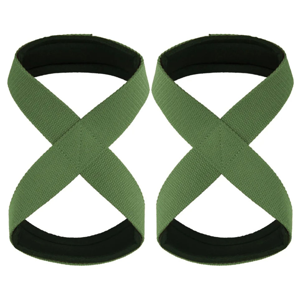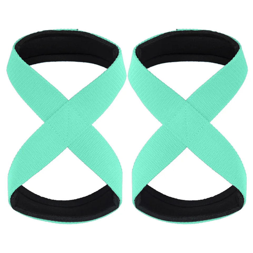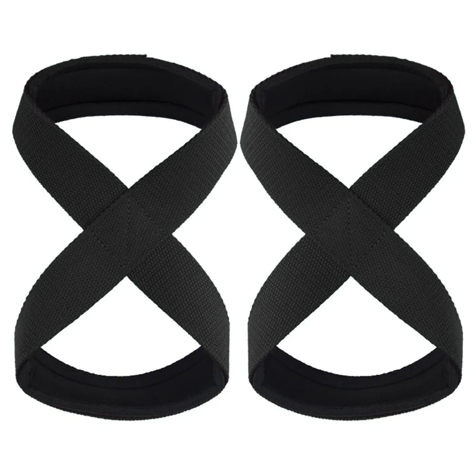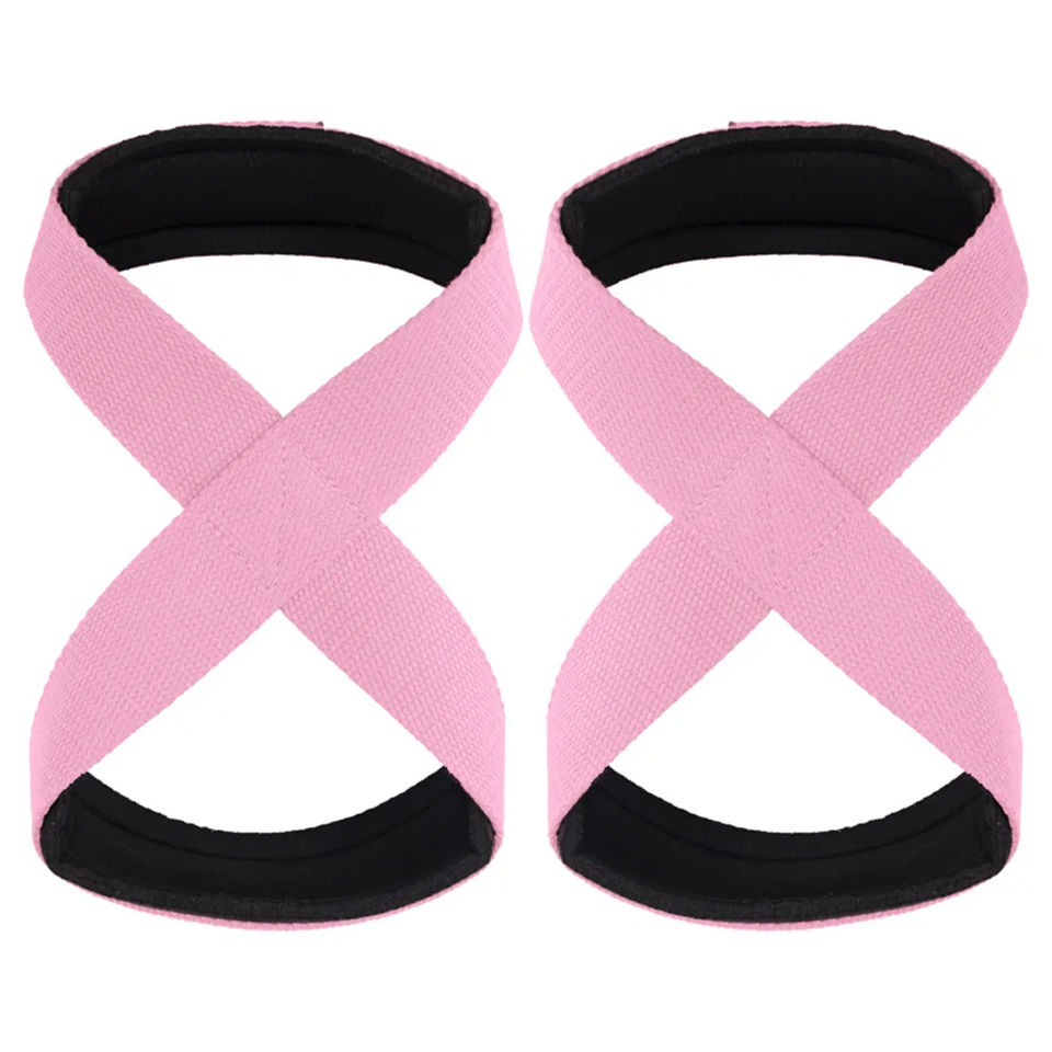 สายรัดยกน้ำหนักรูปเลขแปดสำหรับนักเพาะกายมืออาชีพ ผลิตจากผ้าฝ้าย 100% พร้อมที่จับเพิ่มแรงยึดเกาะ
