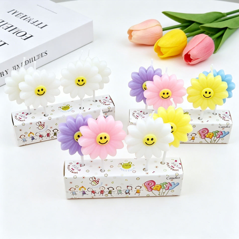 ชุดเทียนตกแต่งเค้กวันเกิดรูปดอกทานตะวันจากโรงงานผลิตเทียนมืออาชีพสำหรับงานปาร์ตี้
