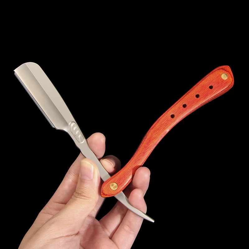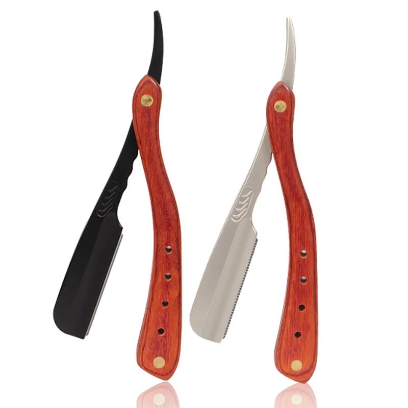 เครื่องโกนหนวดพับได้สำหรับผู้ชายแบบคลาสสิกมีดโกนสแตนเลสด้ามจับไม้อุปกรณ์สำหรับช่างทำผมแบบใช้แล้วทิ้ง