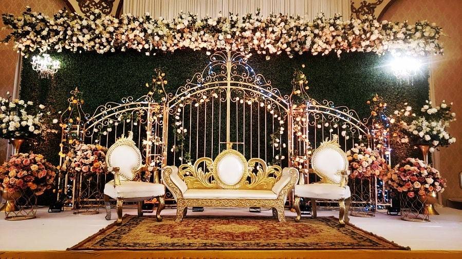 ตกแต่งผนังงานแต่งงานสไตล์คลาสสิกสมัยใหม่ระดับมืออาชีพด้วยโครงสร้างโลหะน้ำหนักเบา