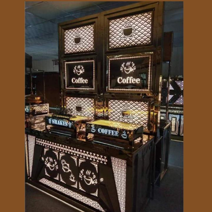เคาน์เตอร์กาแฟแบบมืออาชีพบริการออกแบบเคาน์เตอร์แสดงอาหาร Fabricators บริการอาหารสำหรับบุฟเฟ่ต์มอลล์
